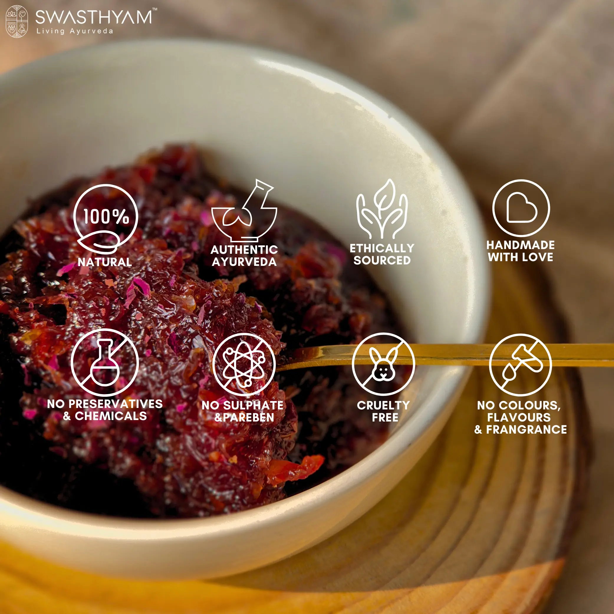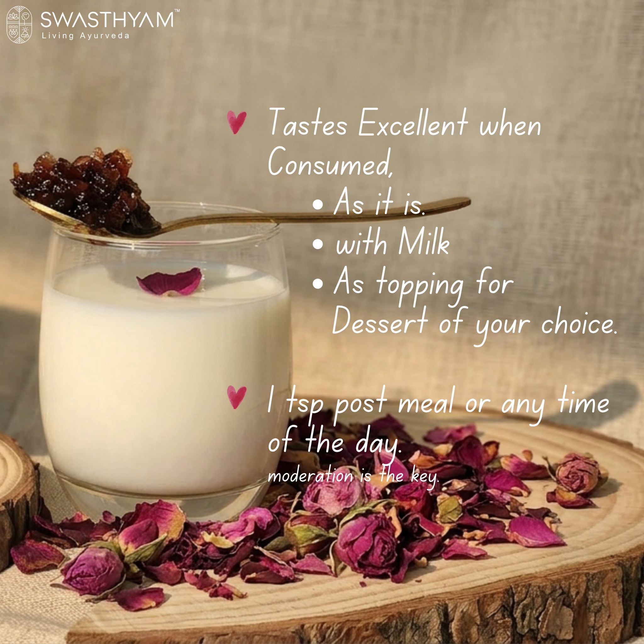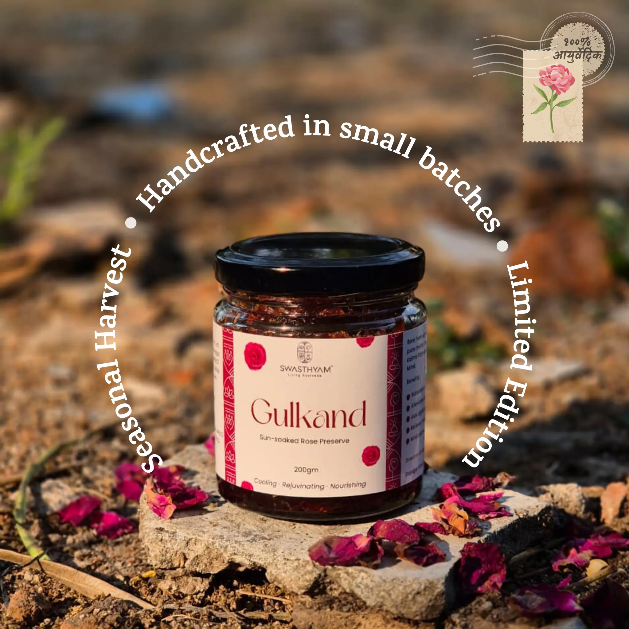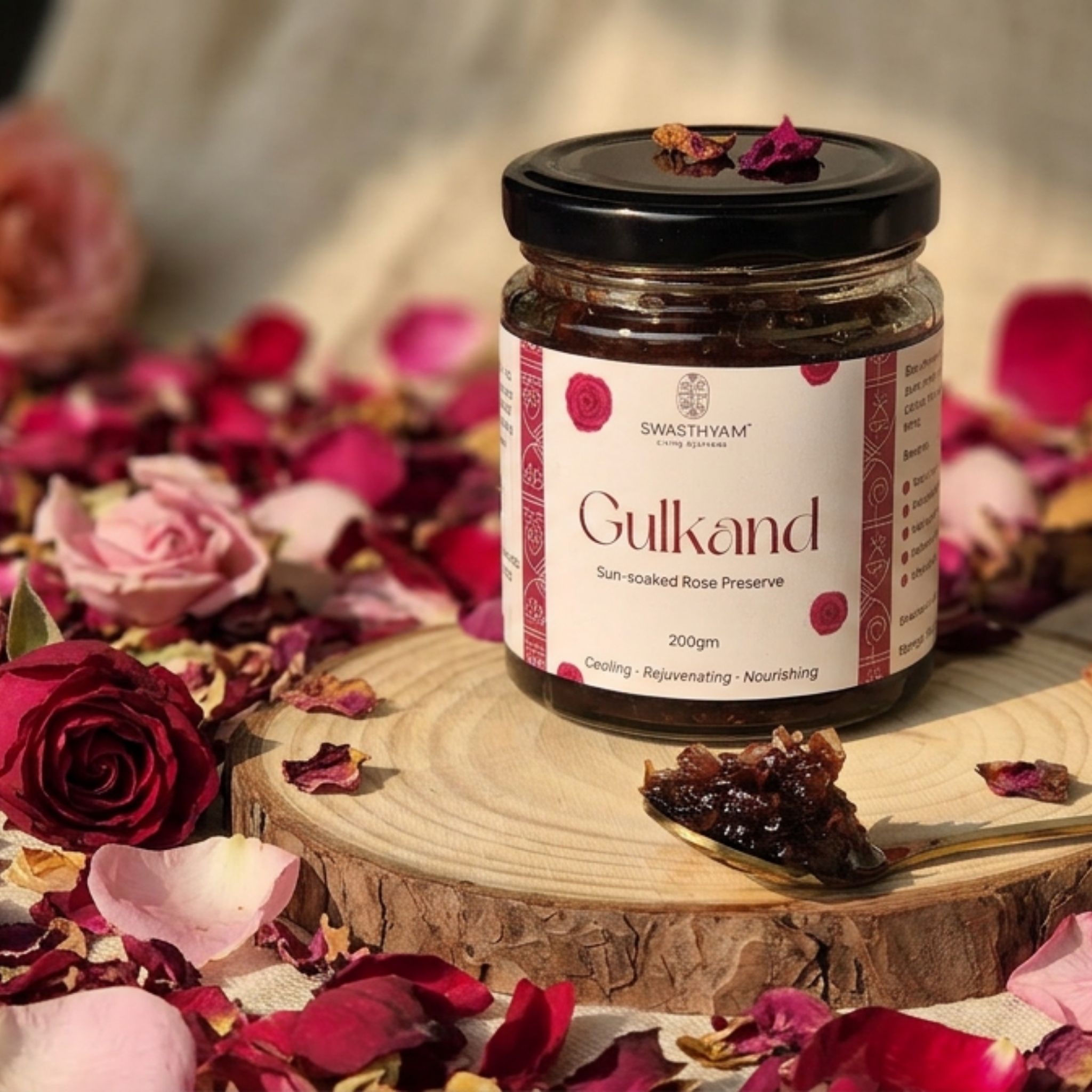 At Swasthyam, we honour that same slow tradition. Our Gulkand is made only during the rose season, patiently matured under sunlight, just as it has been in Indian homes for generations.